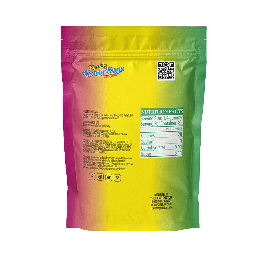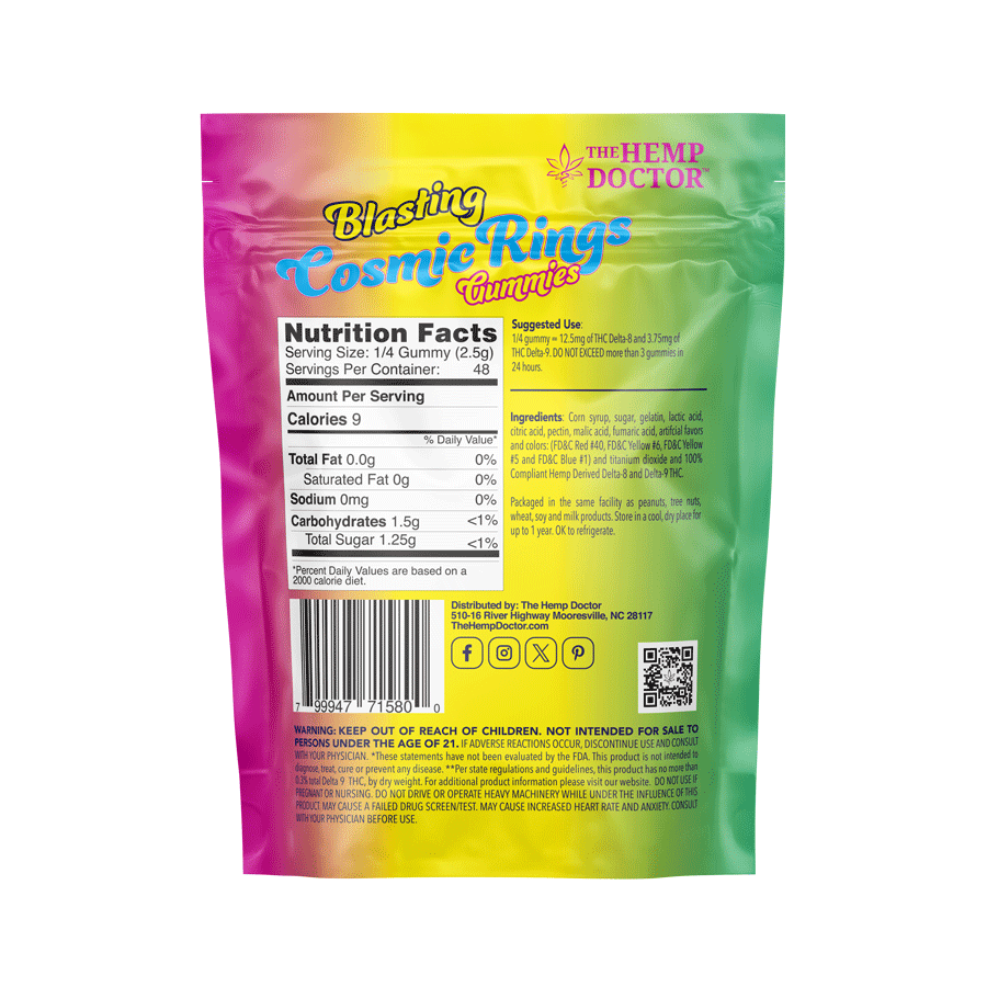 D8:D9 65mg THC Gummies are a high-potency, full-spectrum-style edible that delivers a bold, flavorful experience. Each gummy ring combines Delta 8 and Delta 9 THC for a robust effect that’s perfect for seasoned consumers who know how to dose responsibly.
